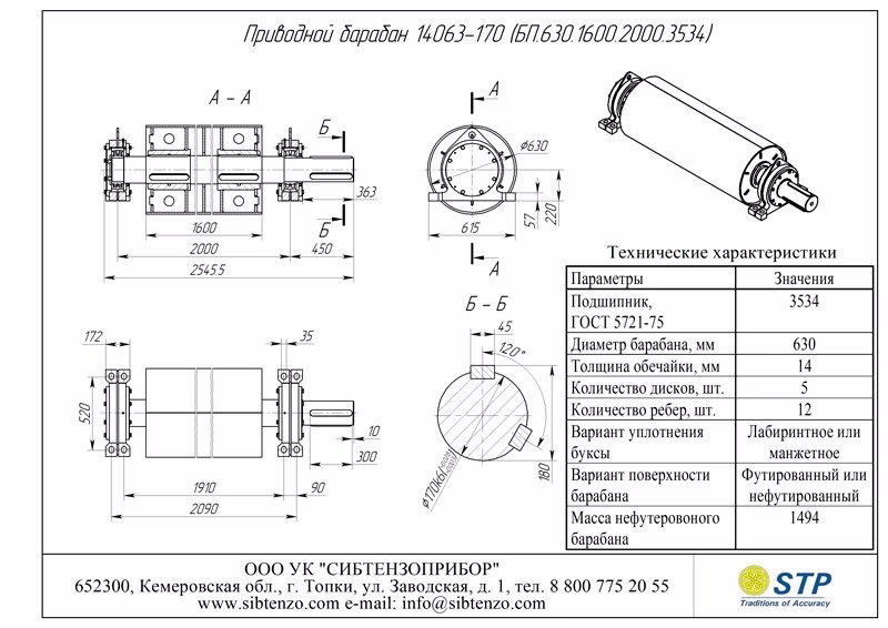 Шир. ленты В, мм Типоразмер приводного барабана Допуст. нагрузка Sб, даН Условное обозначение подшипника Размеры, мм Масса, кг Чертеж