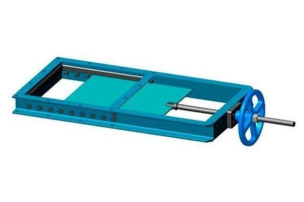 Выпуск сыпучего материала из бункера или ограничение его подачи. Затвор шиберный 3Ш-900х900-МЭП выполняет функцию регулирования либо полной блокировки потока веществ. Отличительной особенностью устройства является использование металлического ножа (пластины) в качестве запорного элемента.