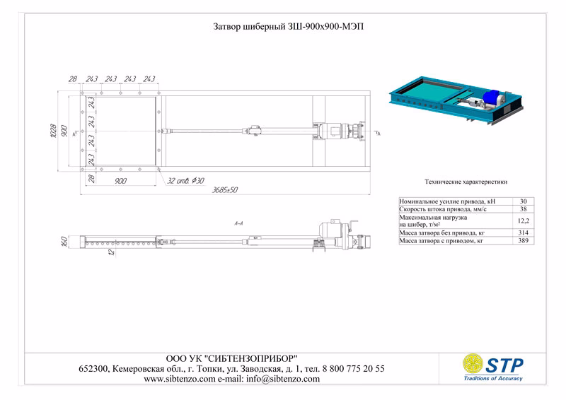 Наименование Габариты проходного окна шибера, мм Состав затвора шиберного ЗШ Масса Максимальная нагрузка на шибер, т/м2